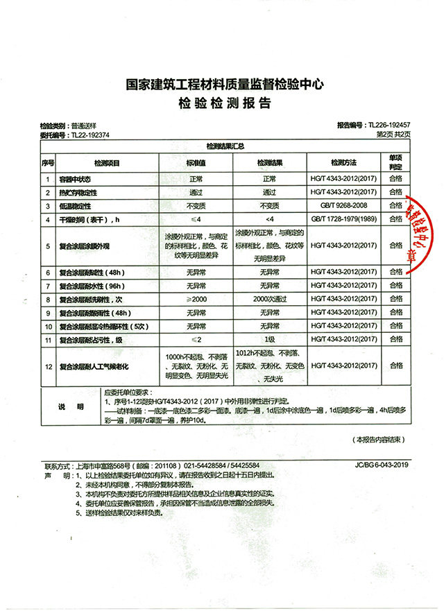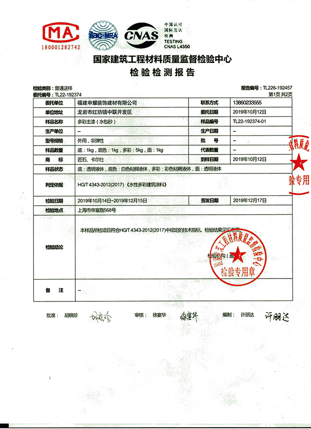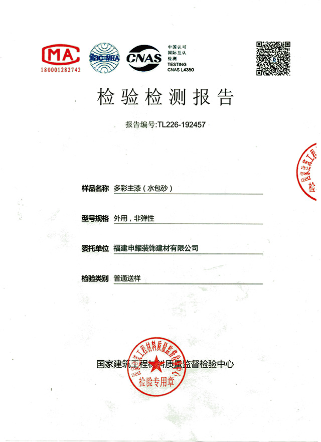 多彩主漆(水包砂)檢驗(yàn)檢測(cè)報(bào)告